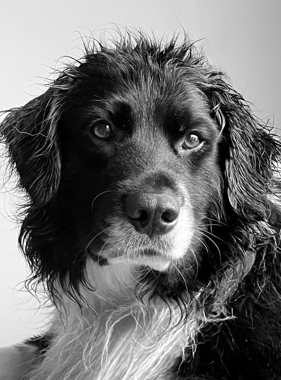 Onze trouwe en eigenwijze viervoeter Djoek. Djoek is geboren op een boerderij in Friesland en hebben wij als pub daar gehaald. Het is een kruising tussen een Friese Stabij (2/3) en een Bordercollie (1/3).
